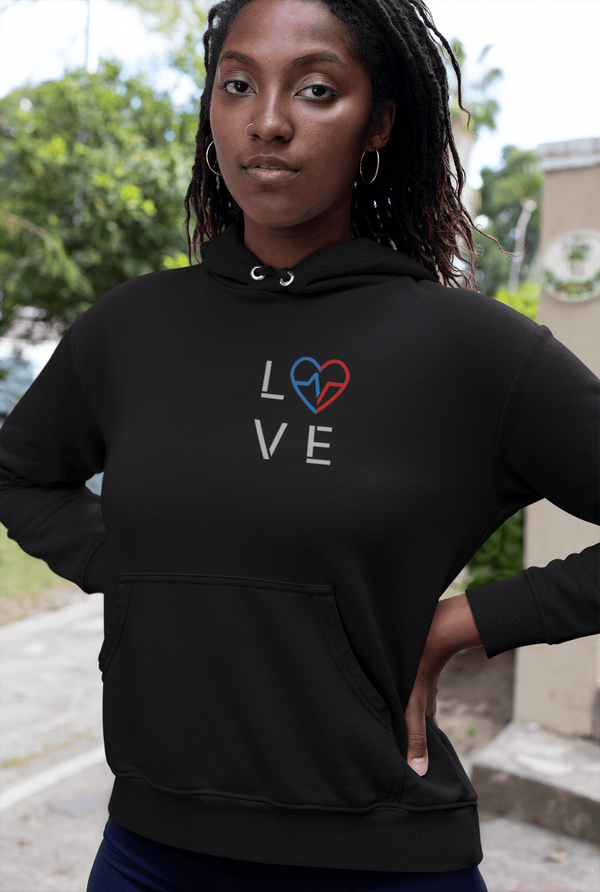 The Love Season Hoodie is the flagship piece of the Love Clan’s signature capsule — a premium, minimalist design built around meaning, culture, and intention. The centerpiece is the Love Clan emblem: a half-red, half-blue heart set against a Black foundation. Red represents passion, fire, and emotional urgency. Blue reflects clarity, discipline, and steady strength. Black is the origin and cultural grounding behind it all.